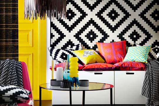 by providing a bright color in the living room, where the walls of